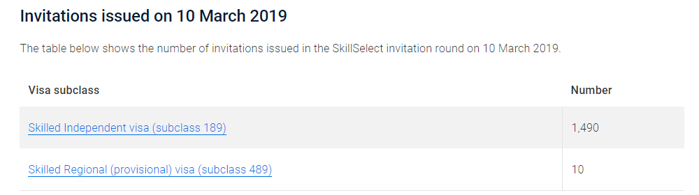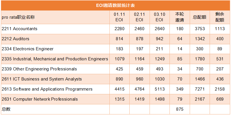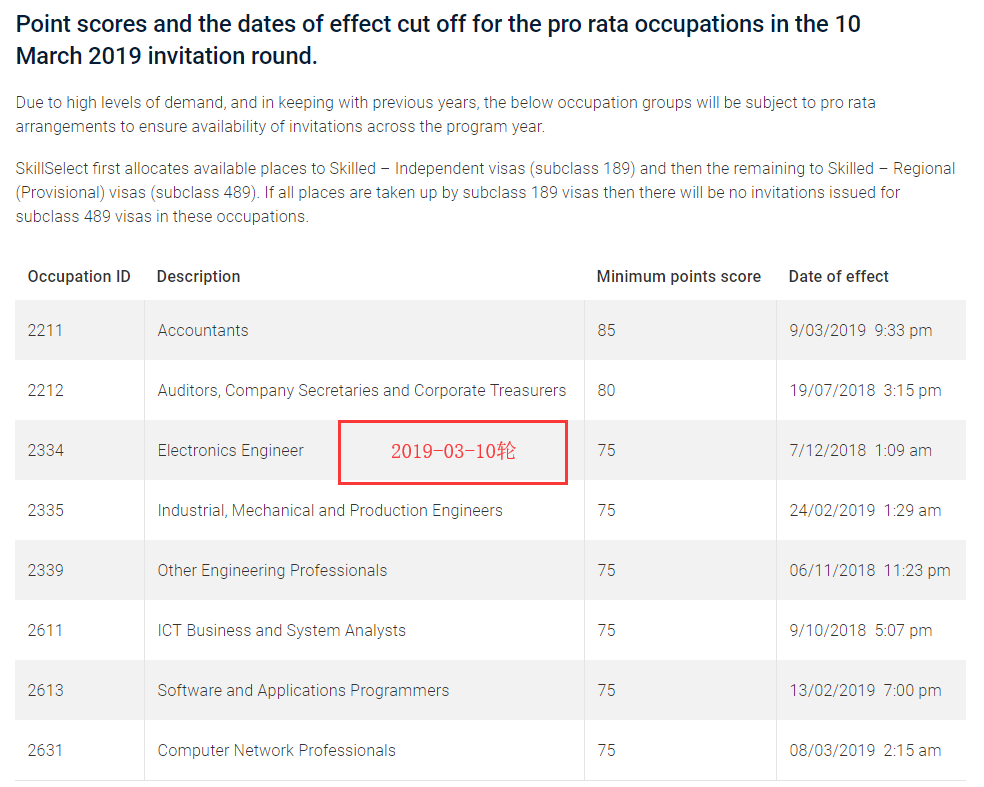 今日,澳大利亚内政部更新了2018-19财年第九轮即2019年3月10日的EOI邀请官方报告。以下是大家最关心的各个职业的邀请情况: