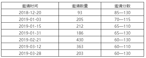最高邀请分数相较上轮提高20分,最低获邀分数保持60不变!