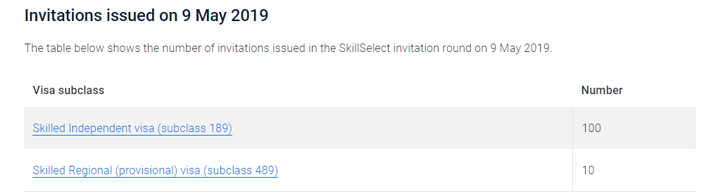 此轮189独立技术移民仅邀请了100人;489偏远地区亲属担保邀请了10人,保持不变。