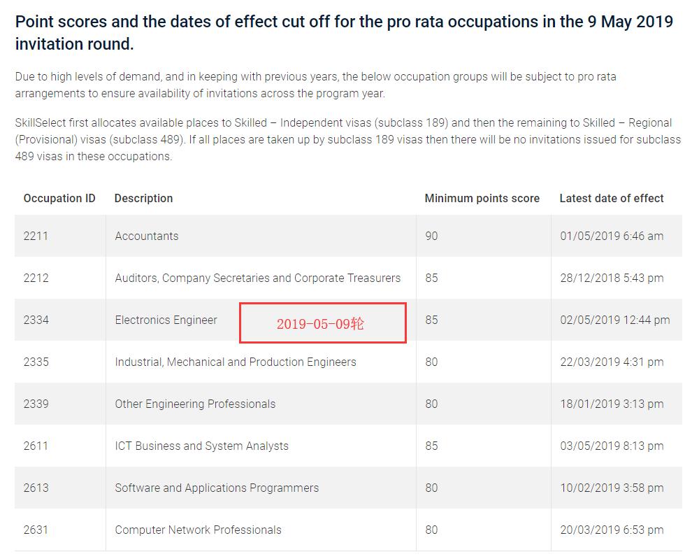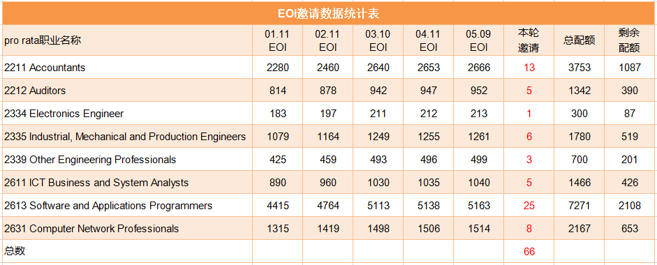 今日,澳大利亚内政部更新了2018-19财年第十一轮即2019年5月9日的EOI邀请官方报告。本财年倒数第二轮邀请,依旧配额荒,邀请甚少。以下是大家最关心的各个职业的邀请情况:
