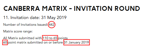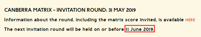 距离本财年结束还有1个多月的时间,ACT政府目前正对Matrix打分系统进行复审,如有改动,将从2019年7月1日开始实施。