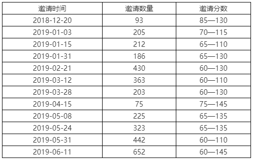 邀请分数:所有65分—140分,60分邀请至3月31日