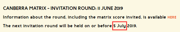 下轮邀请在2019年7月5日,是新财年堪培拉首轮邀请,请做好准备。