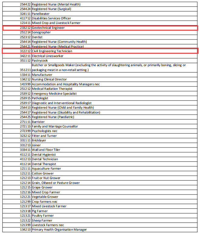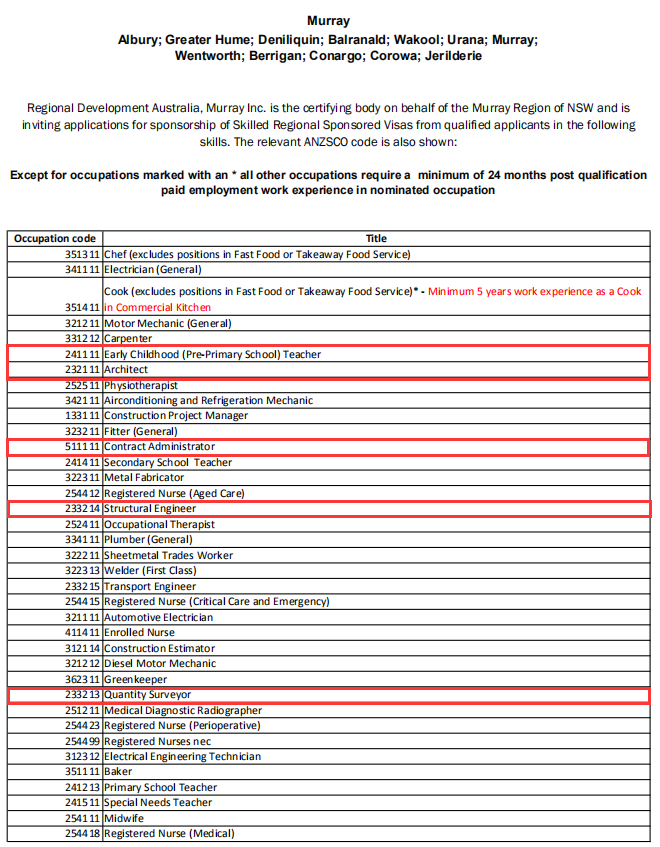 Murray地区职业列表更新,建筑师、合同管理员、结构工程师、交通工程师、工料测量员、土木工程技术员等职业在清单上。