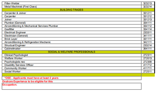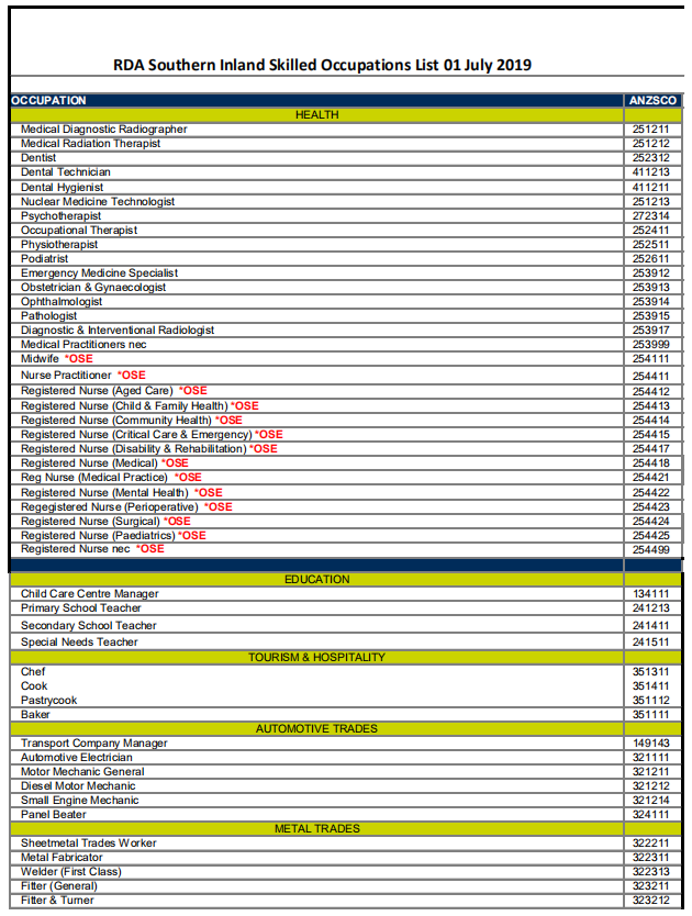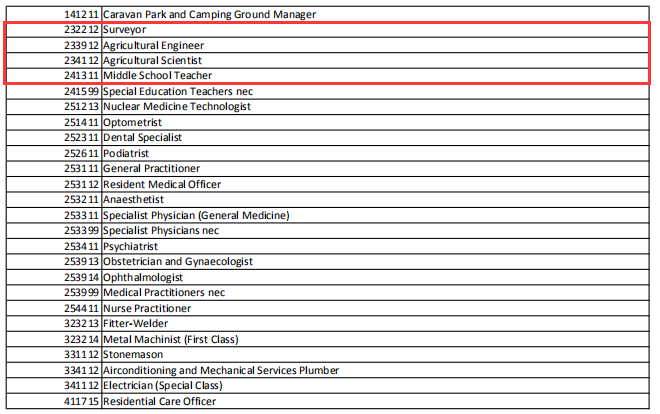 Southern Inland官网显示目前489还是关闭的,具体日期等通知,不过职业清单先发布了。以下是新职业列表:
