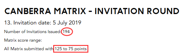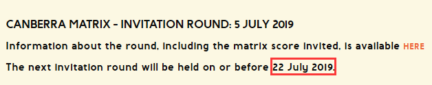 2018年11月29日,ACT堪培拉190州政府担保正式引用Matrix打分系统,2018-19财年一共发出了12轮邀请。
