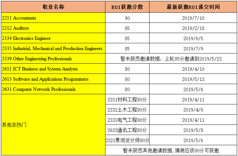 2335工业、机械和生产工程师:2019年7月9日递交的85分获邀,基本上是秒邀,85分即将清理完毕,80分的朋友很快将会邀请到。