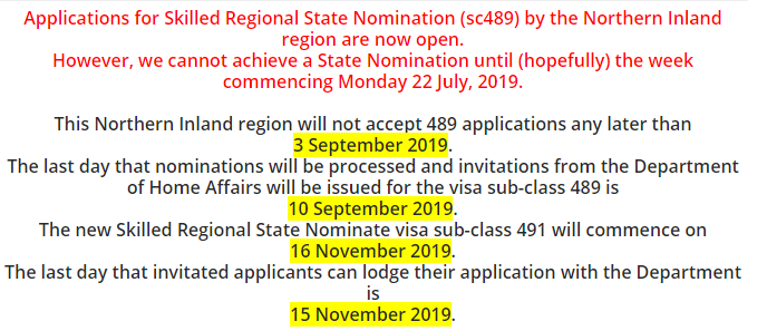 不过,虽然可以递交申请了,Northern Inland表示可能要到下周一也就是7月22号才会开始提名工作。