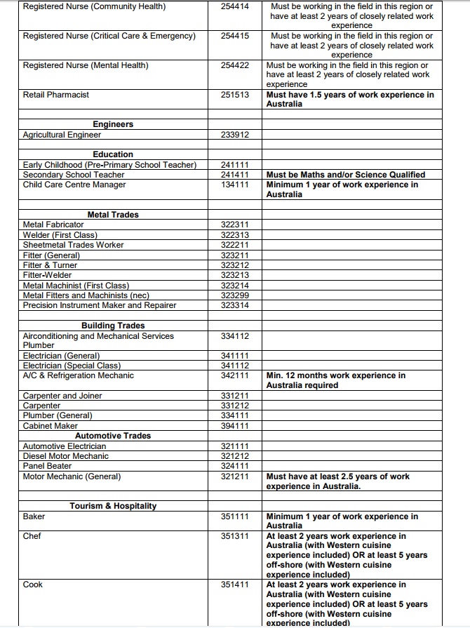 技工类职业比较多,还是厨师、电工那些工种。2个厨师职业都是要求2年澳洲工作经验的。