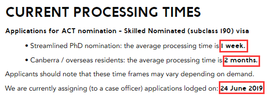 堪培拉政府目前已经审理至2019年6月24日递交的申请。