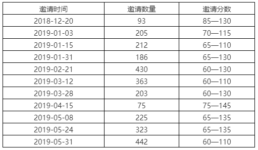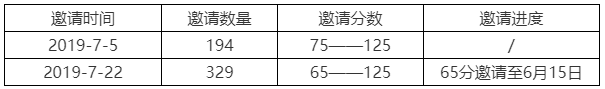 邀请分数:所有70分—125分,65分邀请至6月15日