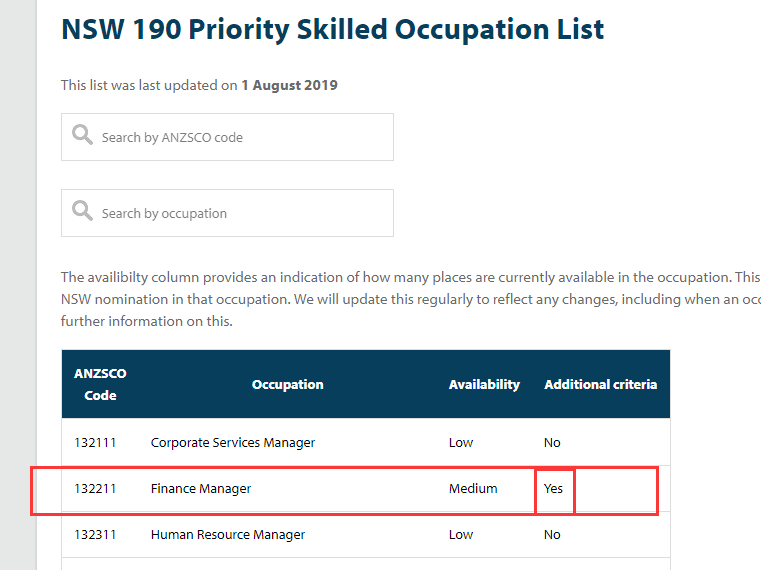 132211 Finance Manager 变为需要满足额外要求,即要求在新州居住,且至少一年新州本地提名职业的工作经验。