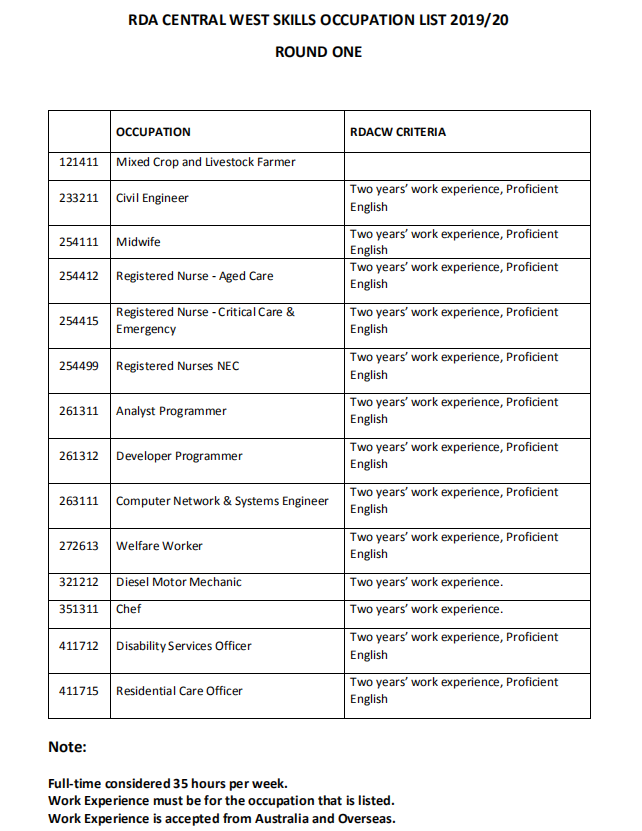 几乎所有职业都要求2年工作经验,Full-time的标准是每周35h。另外,大部分职业都要求Proficient English即雅思7分或PTE 65分。通过以上开放的职业清单可以看到,虽然开放的职业种类并不是很多,但土木工程师233211和IT类261311、261312以及263111职业都在清单上,可见偏远地区对这两类职业的需求还是非常大的。另外,护理类254412、254415、254499以及社工和厨师也都在。仅121411 混合作物和牲畜农民一个职业无额外要求,只要满足以下条件即可: