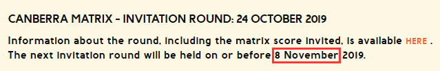 在Matrix评分系统获得邀请只是获得堪培拉州担保的第一步,希望获得邀请的朋友尽快将全部相关材料准备好去递交堪培拉190州担保申请,并支付审理费。
