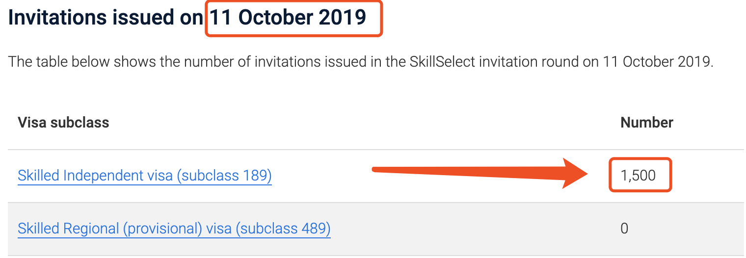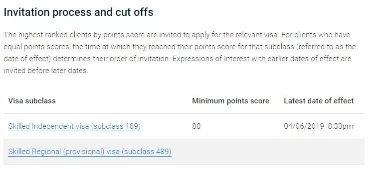 今日,移民局更新了新财年第四轮10月11日的EOI邀请官方报告,获邀分数终于降低。