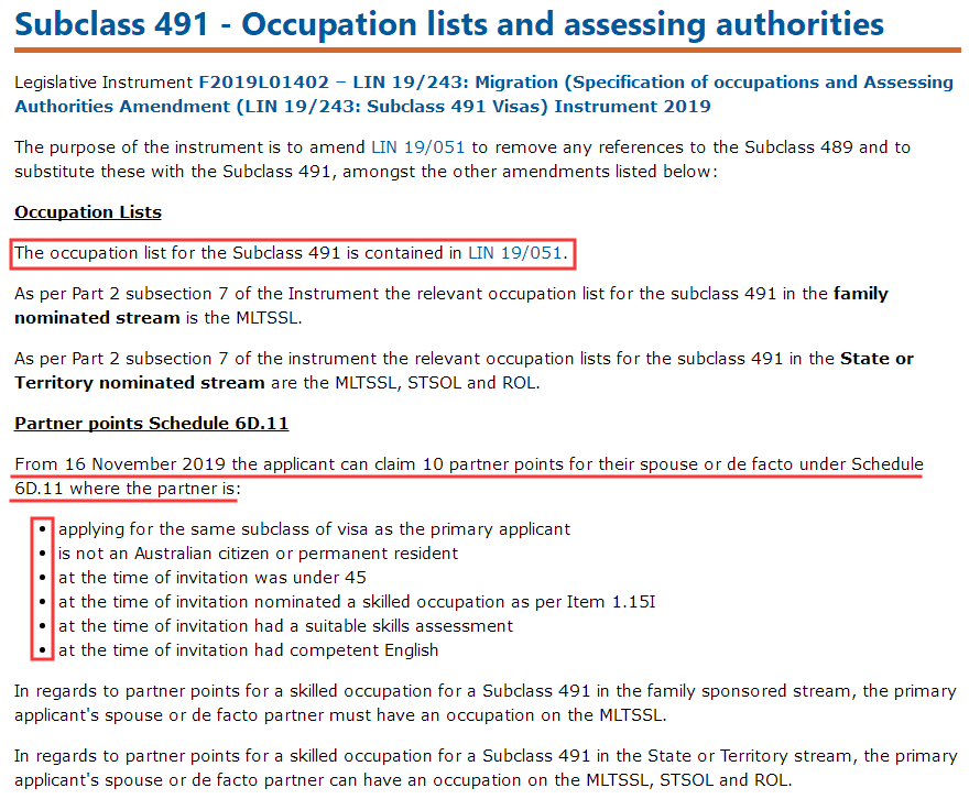 同时,MIA来信也提到了关于配偶加分(Schedule 6D.11),11月16日起,满足一定要求的副申配偶可以为主申加10分,对配偶的要求是: