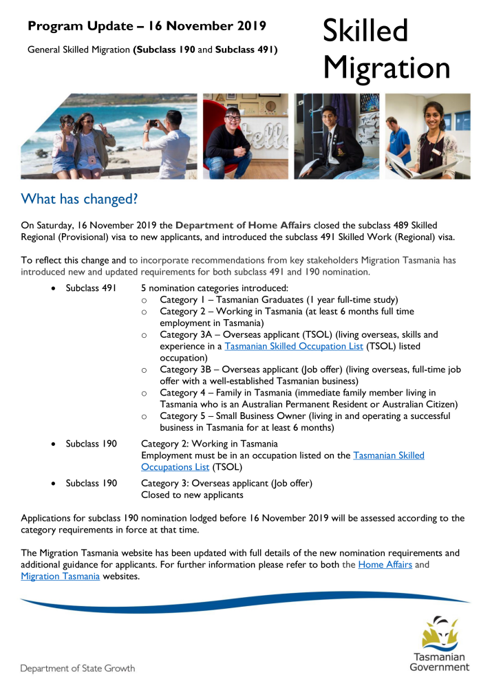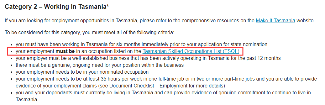 今天,塔州190州担又有了更新,主要针对Category 2–Working in Tasmania*这个类别。