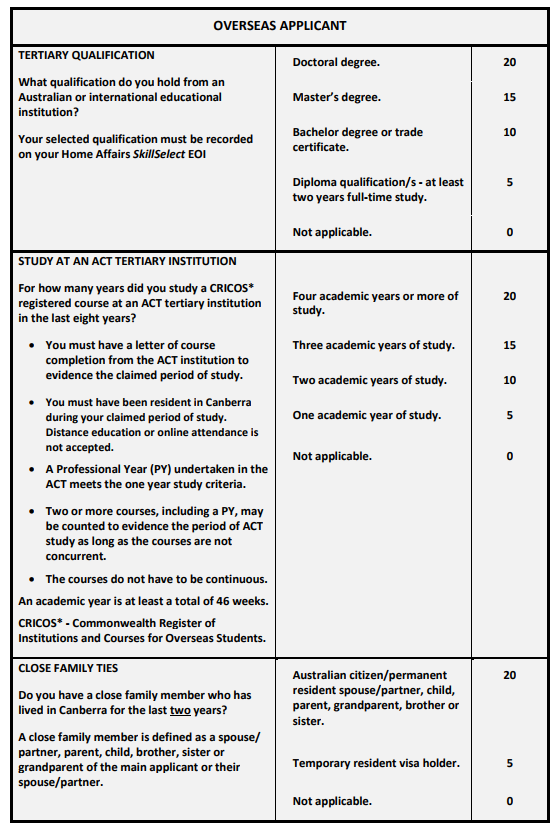 由于时间有限,这里只讲了海外申请人类别的政策及评分变化。堪培拉居民类别也发生了多项变化。除了上述比较根本性的变化外,堪培拉政府发布的guidelines中还有一些细节调整,包括材料和填写要求,比如用来加分的skilled工作必须在EOI中也要申明等。