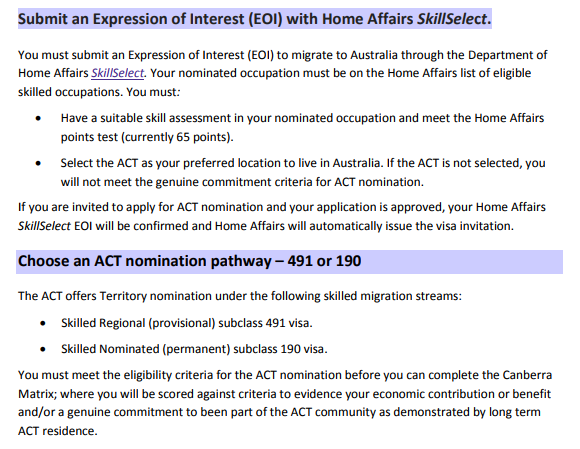 1. 递交EOI,在EOI中选择ACT堪培拉,并且选491 或者190州担;