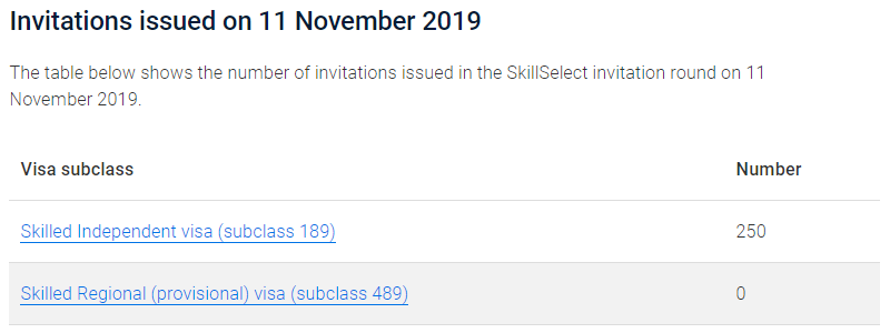 此轮189独立技术移民仍仅邀请250人;489偏远地区亲属担保是零邀请。