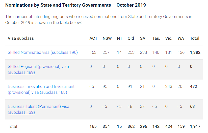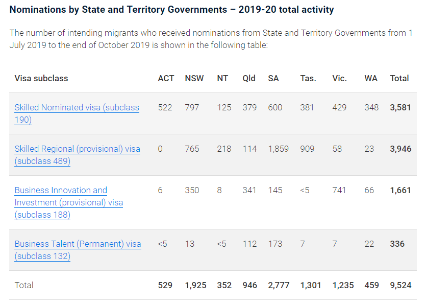正所谓:条条道路通罗马。189道路曲折,何不选择一条相对而言走起来更轻松的道路呢?要达到移民这个终极目标,不是只有189这一条路,190和偏远地区491州担保也可以。我们可以看下本财年各州政府的邀请情况。