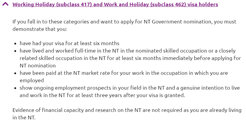 l 申请前已在北领地居住并从事提名职业相关的全职工作至少6个月;