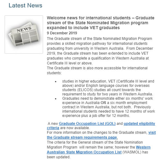 西澳官网今天也发布了通知:西澳欢迎国际毕业生,并且毕业生类别扩大到VET类毕业生。