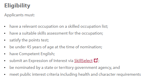 l 提名职业需在NSW Stream 1 偏远地区职业列表上;