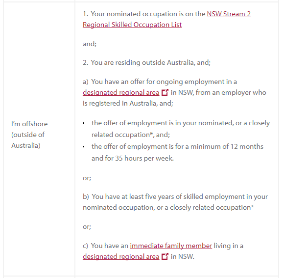 a. 有新州偏远地区雇主提供的job offer,职位与提名职业高度相关,job offer时长至少12个月且每周工作至少35小时,或者;