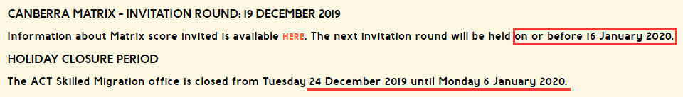 圣诞节将至,堪培拉技术移民办公室从2019年12月24日(星期二)至2020年1月6日(星期一)关闭。