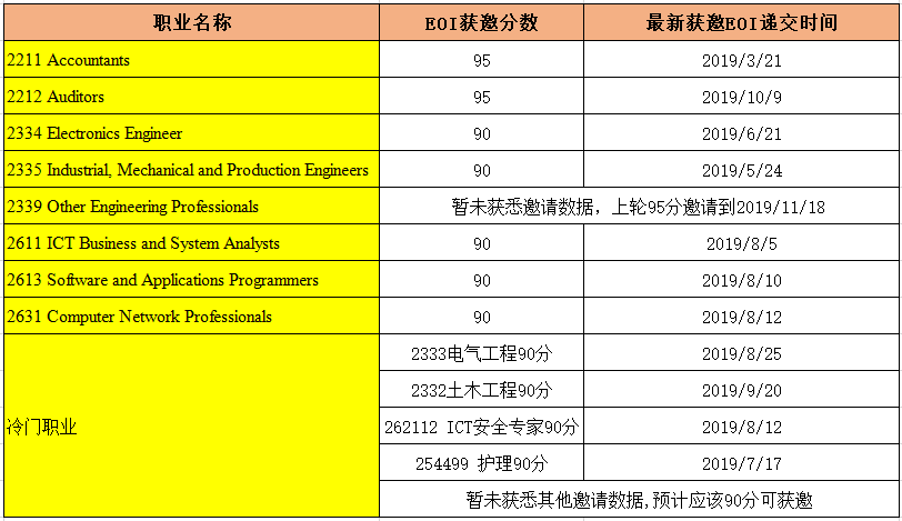 2335工业、机械和生产工程师:2019年5月24日递交的90分获邀,上轮邀请到2019年9月29日的95分。