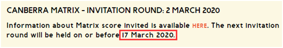 在Matrix评分系统获得邀请只是获得堪培拉州担保的第一步,希望获得邀请的朋友尽快将全部相关材料准备好14天内递交正式的州担保申请,并支付审理费,否则邀请将作废。
