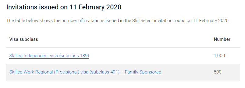 此轮189独立技术移民邀请1000人;491偏远地区亲属担保邀请500人。