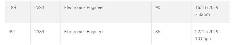 2334电子工程师本轮共邀请40人。189 90分获邀,邀请到2019年11月16日,较上轮推进接近2个月。491亲属担保85分获邀,邀请到2019年12月22日,较上轮降低了10分。