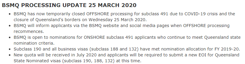 ▪ 2020年7月1日昆州将收到新的配额,届时申请人可重新递交(190、188、132)EOI申请昆州州担保。