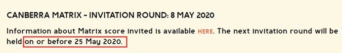 在Matrix评分系统获得邀请只是获得堪培拉州担保的第一步,希望获得邀请的朋友尽快将全部相关材料准备好14天内递交正式的州担保申请,并支付审理费,否则邀请将作废。
