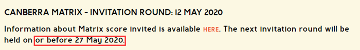 在Matrix评分系统获得邀请只是获得堪培拉州担保的第一步,希望获得邀请的朋友尽快将全部相关材料准备好14天内递交正式的州担保申请,并支付审理费,否则邀请将作废。