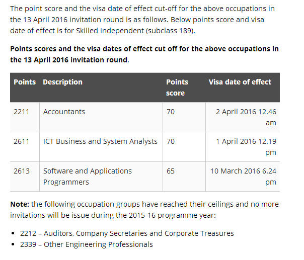 由于移民局收到以下职业的大量的EOI, 以下职业的邀请将每个月两次按比例来发放:
