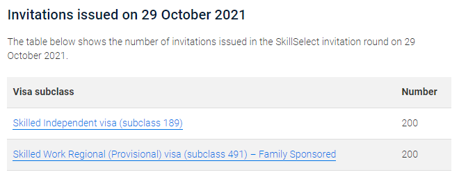 此轮189独立技术移民邀请了200人;491偏远地区亲属担保邀请了200人。