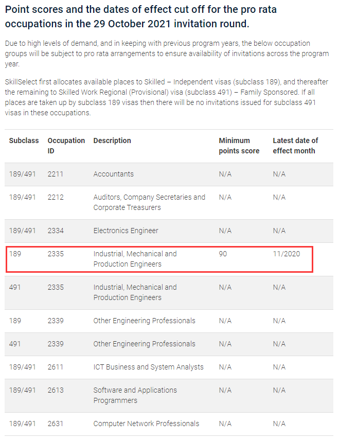 本轮8大热门职业只有2335-Industrial Mechanical and Production Engineers【工业、机械和生产工程师】90分获得邀请,但是其他职业仍未发邀请!