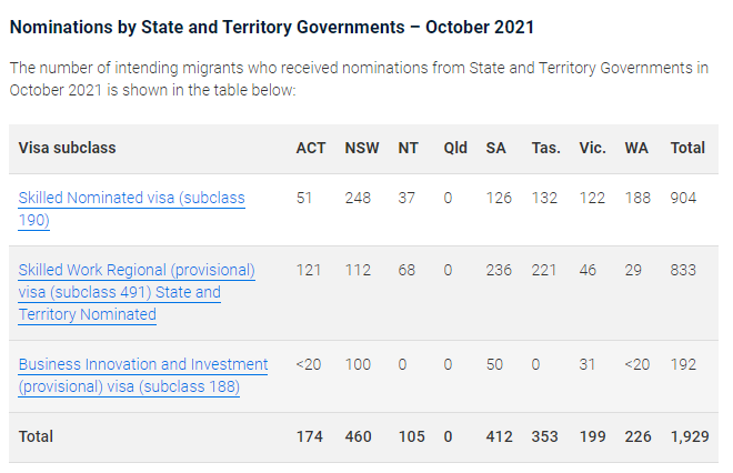 491偏远地区州担保:南澳发了236个位居第一,塔州221个排第二,ACT首领地10月邀请稳定,发出121个,新州112个,NT北领地68个,维州和西澳<50个,昆州由于10月底新政才开放还未发出邀请。