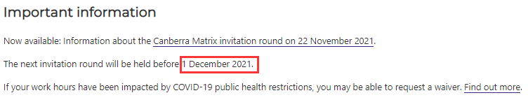 ACT州政府仍然保持了每周一邀的频率,下次邀请预计在12月1日之前。