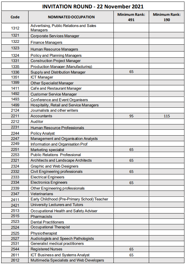 关键职业申请人类别:发出51个邀请:190邀请4个,最低获邀分数为115分,上涨10分;491邀请47个,最低获邀分数仍是65分(会计仅需95分)。