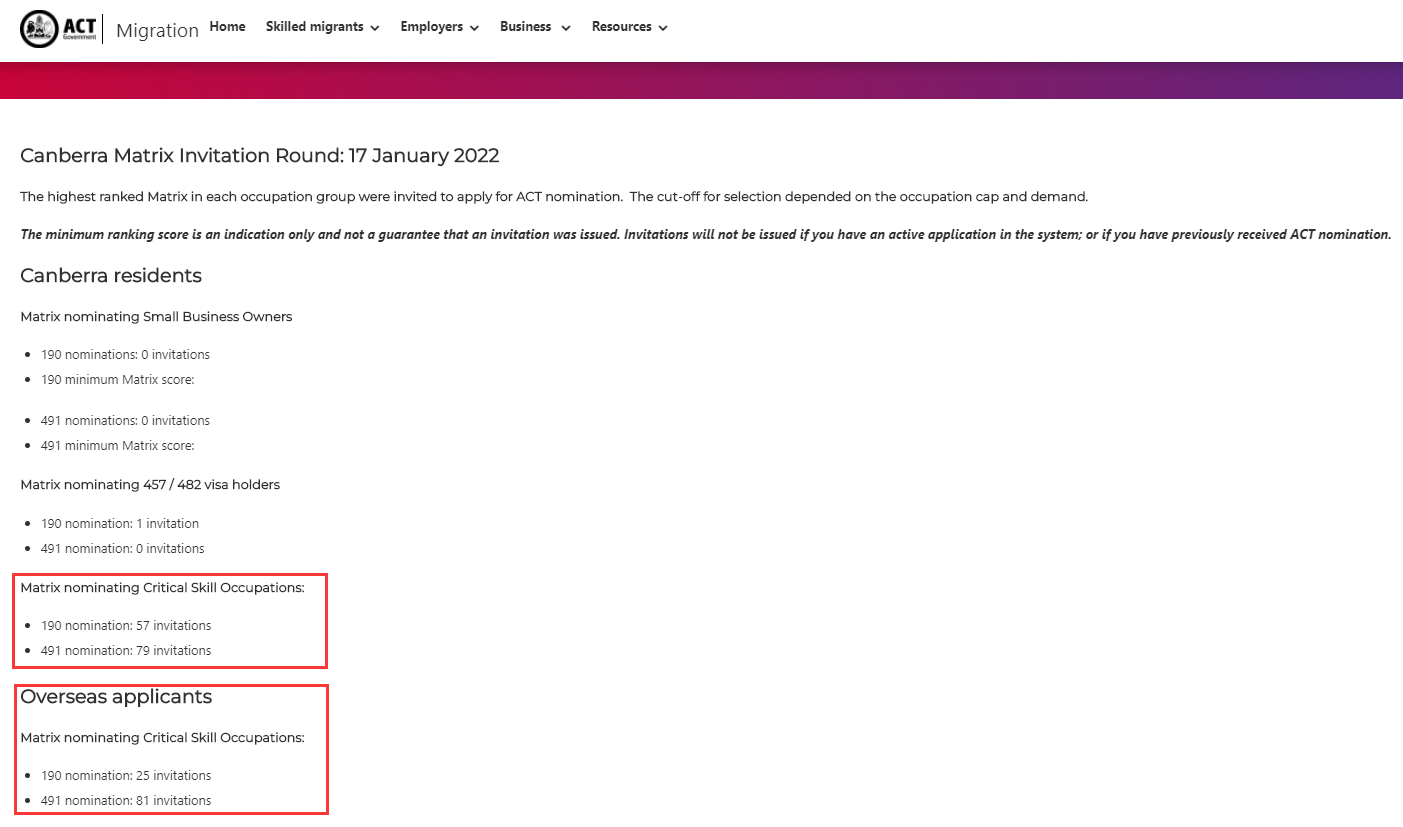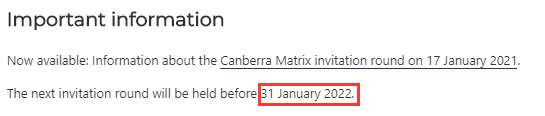 ACT州政府仍然保持了每周一邀的频率,下次邀请预计在2021年1月31日之前。