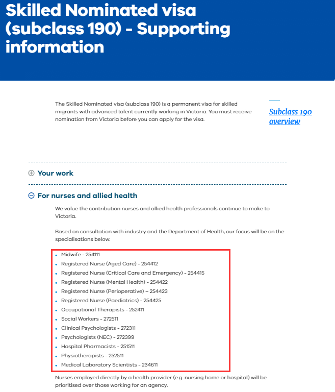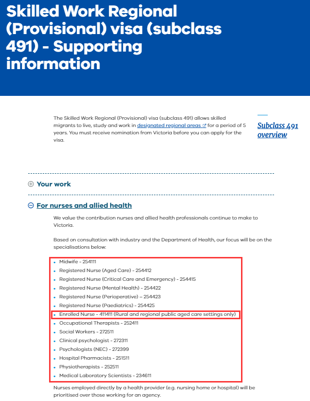 本次更新后,多个Registered Nurse都可以申请维州190/491,特别要注意的是Enrolled Nurse可以申请491啦!
