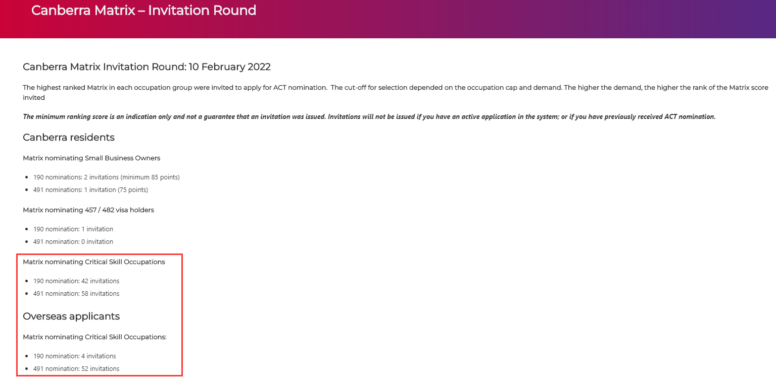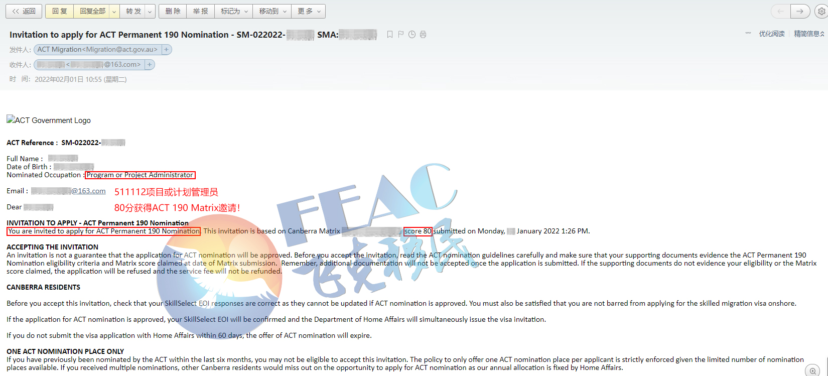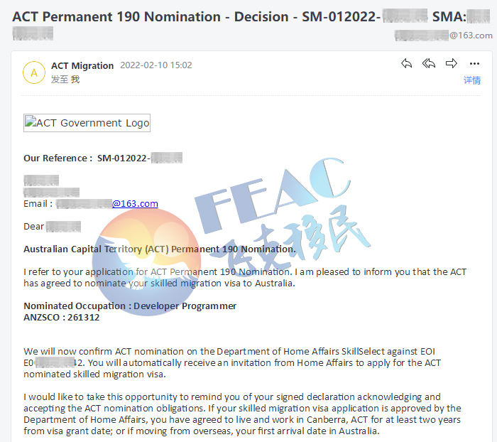 2022年2月10日获得ACT 190担保并EOI获邀。