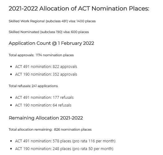 截至2022年2月1日,本财年堪培拉491州担提名已通过822个,拒绝177个,190州担提名已通过352个,拒绝64个。配额逐渐减少,目前190剩余248个(预计平均每月50个),491剩余578个(预计平均每月116个)。