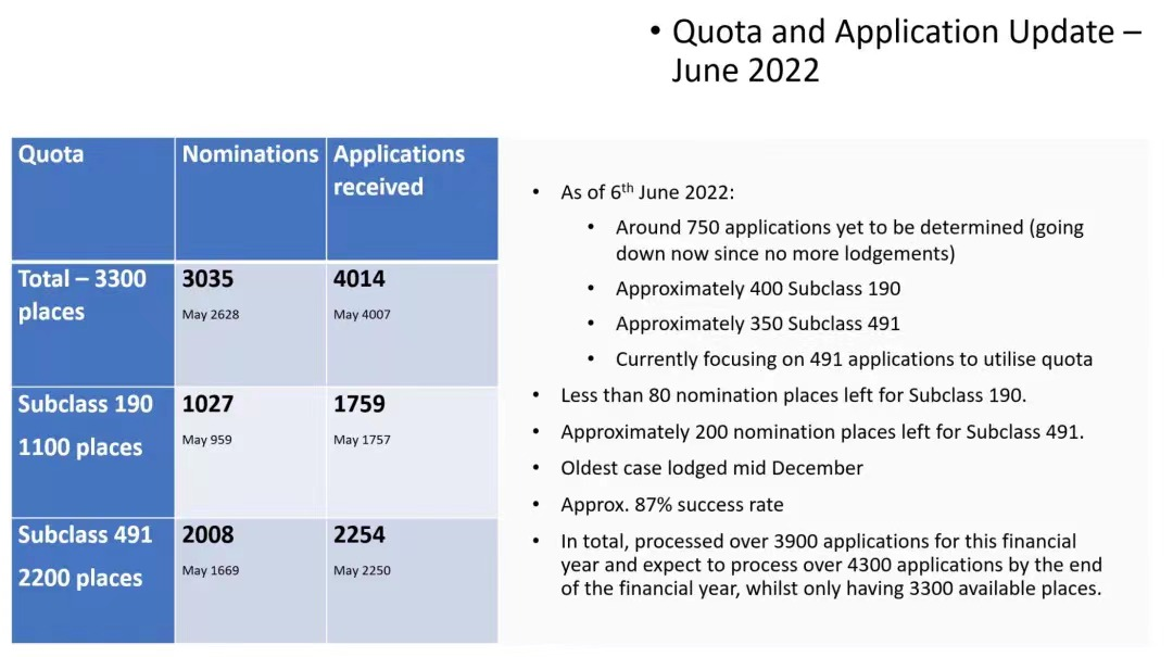 截止2022年6月6日,仍有约750个申请待处理,其中190大约有400个,491大约有350个。塔州州政府目前正在重点审理491签证的申请。
