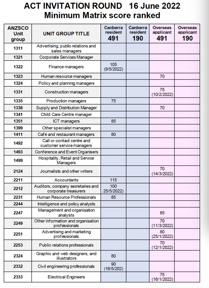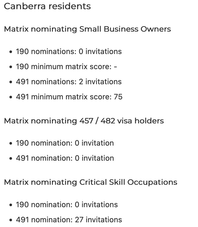 ACT州政府于上周四6月16日发放了最新一轮邀请,邀请结果如下所示。