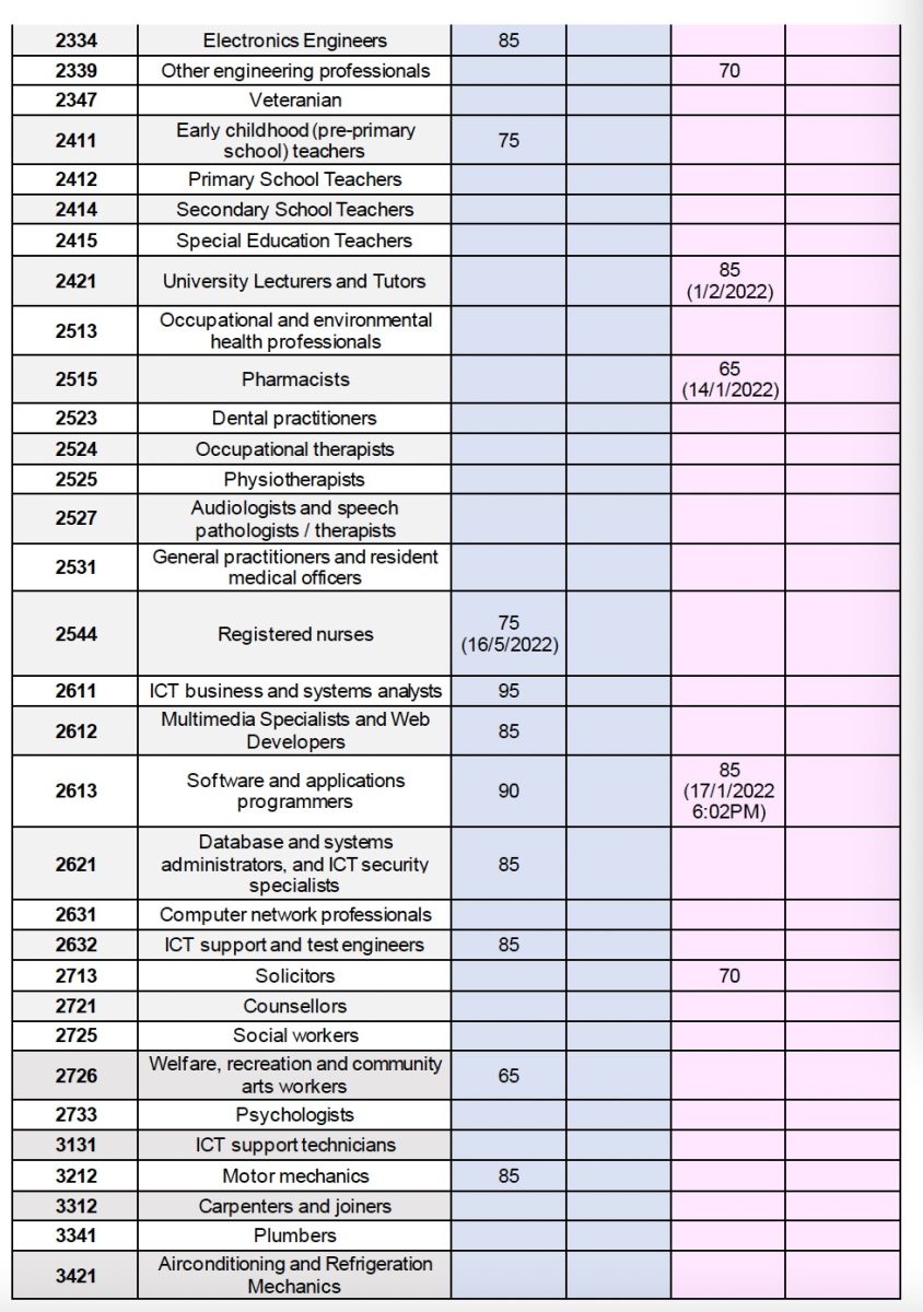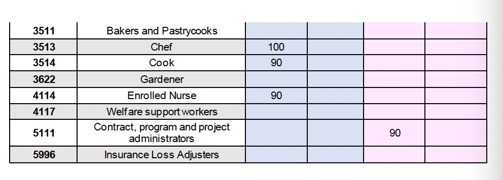 491签证方面,获邀的分数区间从65分到115分。65分的职业是2726福利、娱乐和社区艺术工作者,以及2515药剂师。最高分115分依旧来自2211会计,其次来自1322财务经理(105分),2212审计、公司秘书和公司财务主管(100分),3513厨师(100分)。